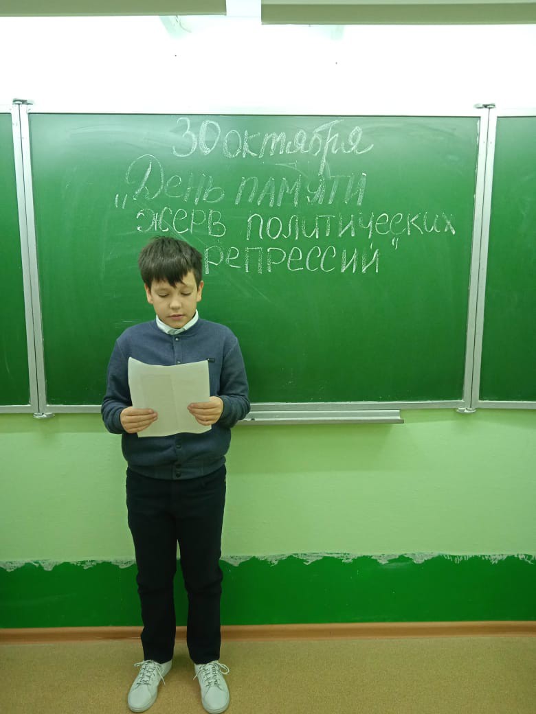 Первая четверть 2021-2022 учебного года для учащихся завершилась мероприятиями в рамках Дня Памяти жертв политических репрессий. В 5 - 9 классах прошёл Час истории «Этапы мужества и испытаний», в рамках которого ребята готовили сообщения о жертвах политических репрессий. В 8-9 классах на литературном часе «А. Солженицын. Личность. Творчество. Время» учащиеся говорили о роли характера человека в становлении судьбы, рассуждали на вечный вопрос -« Готово ли общество противостоять разным давящим факторам жизни, даже иногда и безнравственны по своей сути способами?». На примере героев рассказов «Как жаль», «Матренин двор» Солженицына ребята увидели примеры несправедливости, порой стоящей целой жизни героям и их родным. Во всех классах прошли классные часы на тему «30 октября –День памяти жертв политических репрессий»