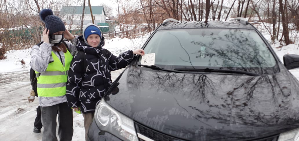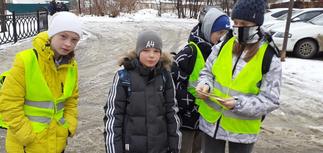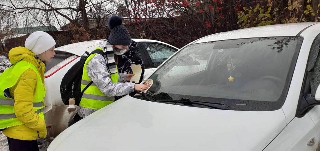 Юные инспекторы раздали памятки «Световозвращатель – это модно!» обучающимся, жителям района Фабрика, прикрепили на машины водителей.