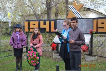 4 мая 2017г. в рамках празднования 72 годовщины Победы в Великой Отечественной войне учащиеся нашей школы с представителями отдела Молодёжной политики провели акцию возложения цветов к Мемориальной плите «Родина помнит Вас 1941-1945». Минутой молчания мы почтили защитников нашей Родины.