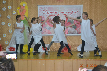 В 1998 году был установлен Указом Президента России Праздник день матери в последнее воскресенья ноября. Это день, когда воздается должное материнскому труду и бескорыстной жертве женщин ради блага своих детей. Мы каждый год с учениками поздравляем самых дорогих и любимых – мам. 29 ноября в актовом зале состоялся праздничный концерт для всех мам и бабушке. В ярко украшенном зале звучали слова благодарности мамам, ребята исполняли песни, читали стихи и танцевали. Слова ребят трогали до глубины души, и часто склонялась голова чтобы незаметно смахнуть набежавшую слезинку. Праздник удался на славу.
