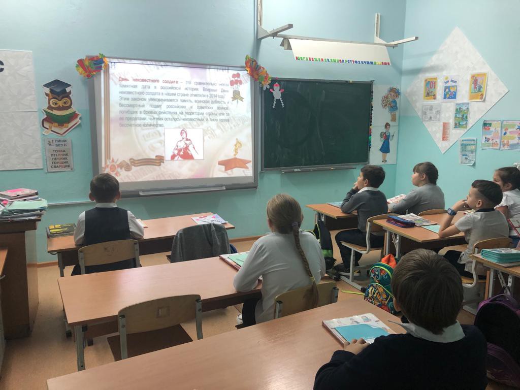 «Мне кажется порою, что солдаты…» - 3 декабря мы отмечаем День Неизвестного солдата, ставшего знаменательной датой с 2014 года. В этот День мы чтим память о всех неизвестных, погибших при защите Родины. И пусть имя солдата неизвестно, но подвиг его бессмертен! 3 декабря в каждом классе прошли Уроки памяти, посвященный этой дате- ребята посмотрели видеоролики, почтили память минутой молчания, прочитали стихи и обсудили важность этой даты.