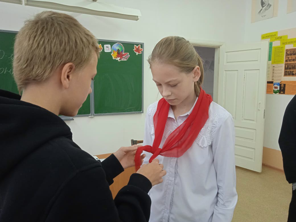 В рамках патриотического воспитания учащиеся 7 класса МБОУ СОШ № 6 познакомились с историей возникновения и развития этой молодёжно-патриотической организации. Учащиеся познакомились с символами, речёвками, целями и традициями пионерской организации, приняли участие в мастер-классе по завязыванию красных галстуков.