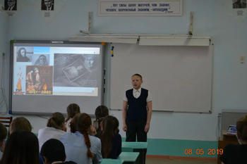 В преддверии 74-годовщины Победы в Великой Отечественной войне в школе был проведен Конкурс чтецов «К штыку приравняли перо…». Педагог – организатор, Михайлова О.Н. с учениками 5 класса подготовили сценарий и презентацию к мероприятию, а желание выступить на конкурсе изъявили 14 учеников с 5 по 8 класс. Репертуар был различен: читали стихотворения поэтов 20 века - К. Симонова, Р. Рождественского, Г. Рублев, А.Деменьев, С. Маршак, как и современных поэтов – О. Клименчук, О.Подчиненова, Л. Лычангина.