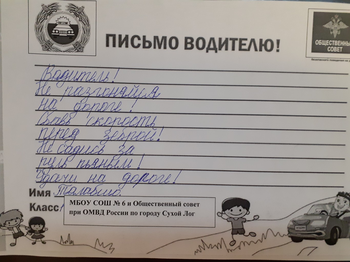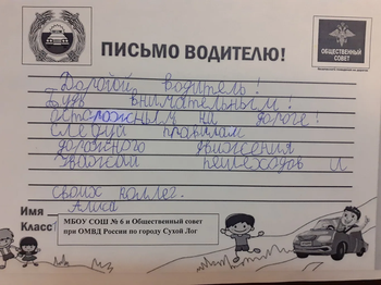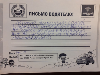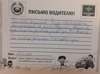 С целью предупреждения дорожно-транспортных происшествий с участием детей в МБОУ СОШ № 6 проведена акция «Письмо водителю», где обучающиеся 1 класса,