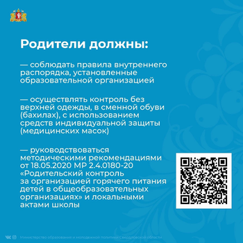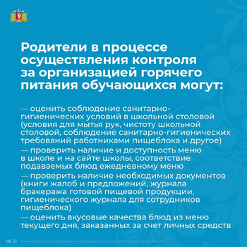 По вопросам организации горячего питания обучающихся в Свердловской области родители могут обратиться через госуслуги: https://www.gosuslugi.ru/10090...
