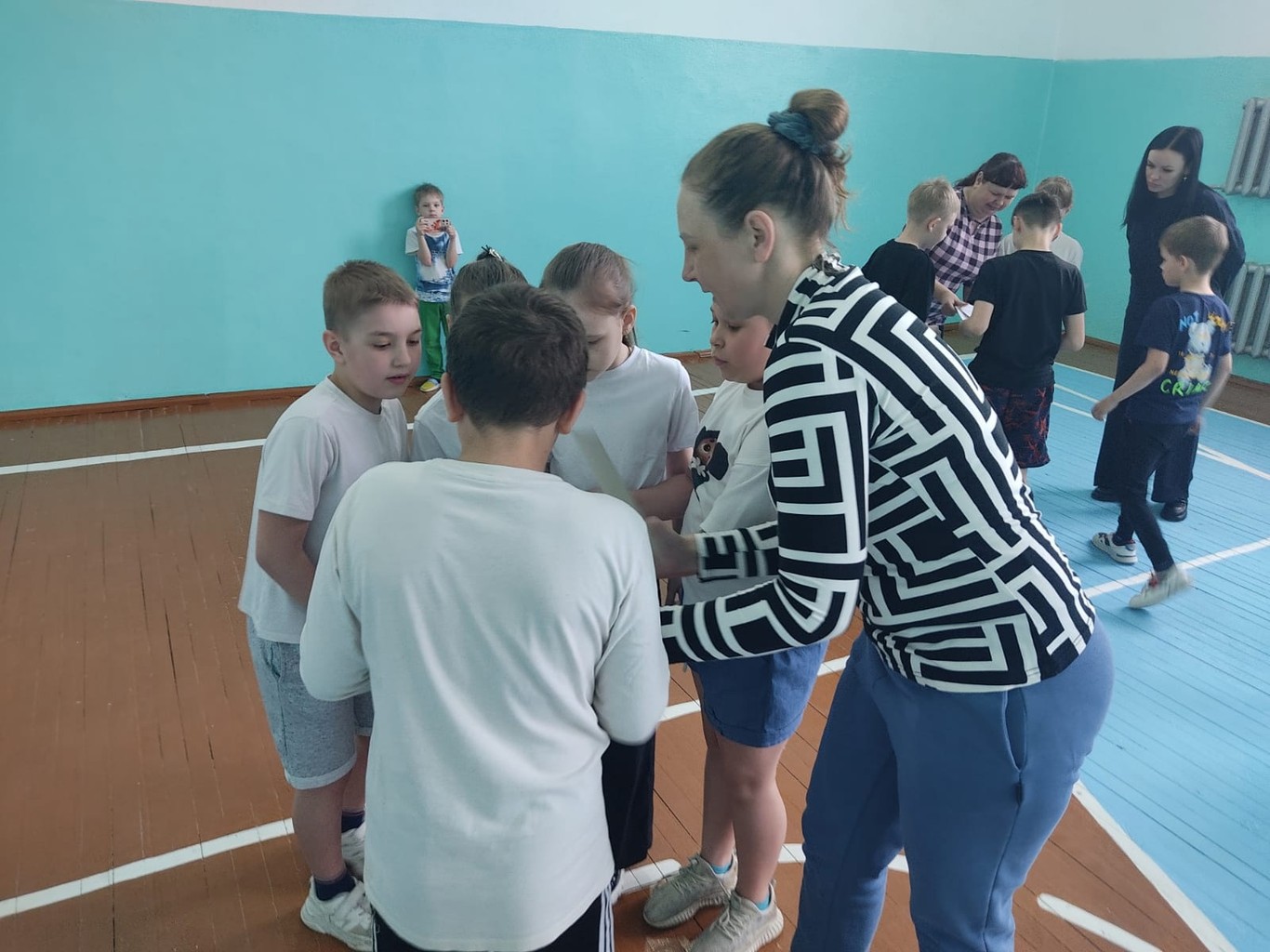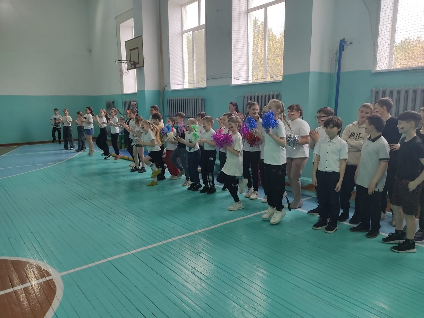 Между конкурсами, чтобы команды отдохнули, учениками начальной школы были проведены флешмобы – все желающие танцевали вместе с выступающим классом.