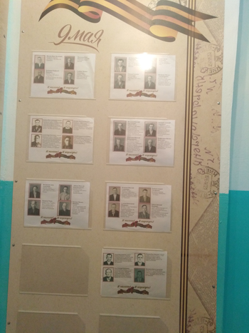 Ровно 10 лет в преддверии 66-летия в победе в Великой Отечественной войне в нашей школе была создана Стена Памяти, посвященная ветеранам проживавшим и проживающим в районе микрорайона фабрика. Каждый год ребята во главе с идейным вдохновителем Михайловой О.Н. находили все новые имена ветеранов. А в этом году была создана обновленная, пополнившаяся на 48 имен Стена Памяти. Торжественное открытие этого события по сложившимся обстоятельствам нам не удалось провести, но мы помним и чтим память о всех воинах, защищавших нашу Родину.