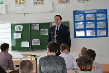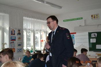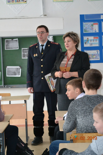 С целью воспитания чувства патриотизма, гордости за свою страну, привития чувства уважения к солдатам, ветеранам, героизму народа в МБОУ СОШ № 6 14 февраля 2019 года проведен «Урок мужества» с начальником ОМВД России по городу Сухой Лог, полковником полиции Сергеем Владимировичем Павловым - офицер, имеющие богатый опыт службы, которого по праву можно называть защитником Родины.
