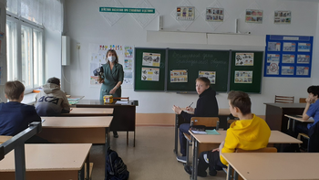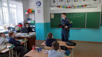Светлана Васильевна рассказала ребятам старших классов о классификации средств индивидуальной защиты органов дыхания: гражданский противогаз, полумаски, маски, респираторы. Напомнила ребятам о действиях в чрезвычайной ситуации: аварии в общественном транспорте, террористической угрозе, аварии на химически опасном объекте. Всем обучающимся через мессенджер whatsApp был отправлен ролик о истории всемирного дня гражданской обороны.