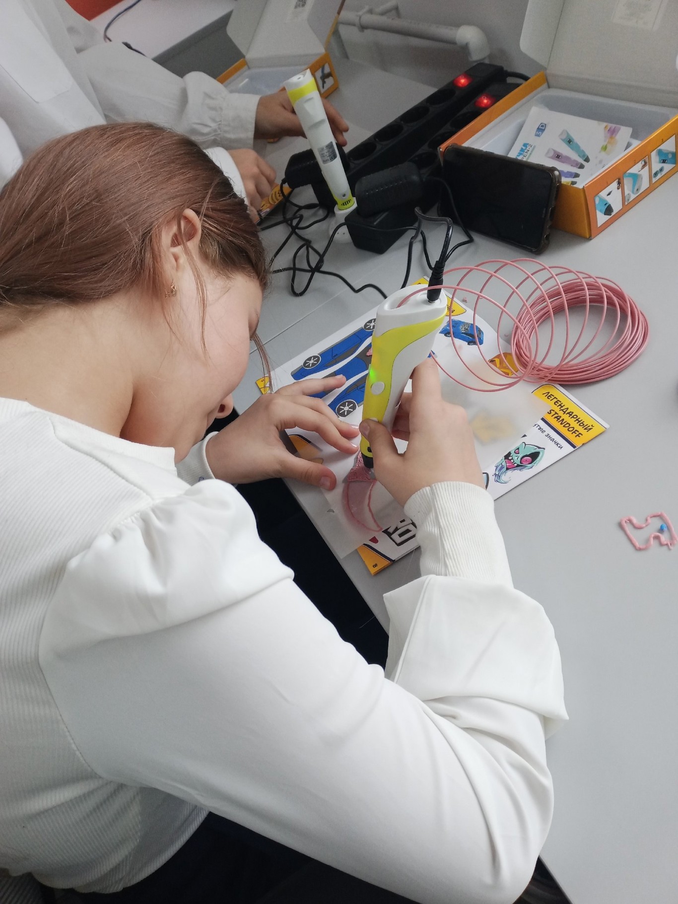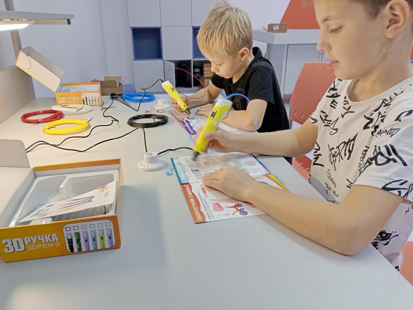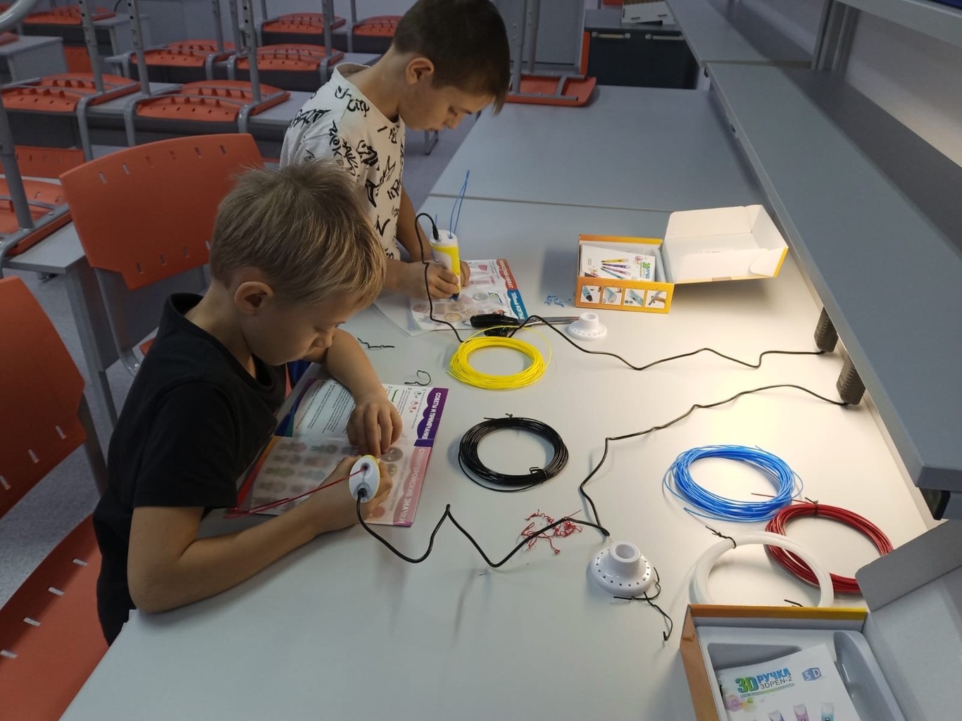Практическая часть занятия была особенно интересной. Под руководством опытного педагога обучающиеся освоили технику создания плоских фигур по готовым шаблонам. Каждый участник смог попробовать себя в роли настоящего 3D-художника, научившись правильно держать инструмент, контролировать скорость подачи пластика и создавать ровные линии.