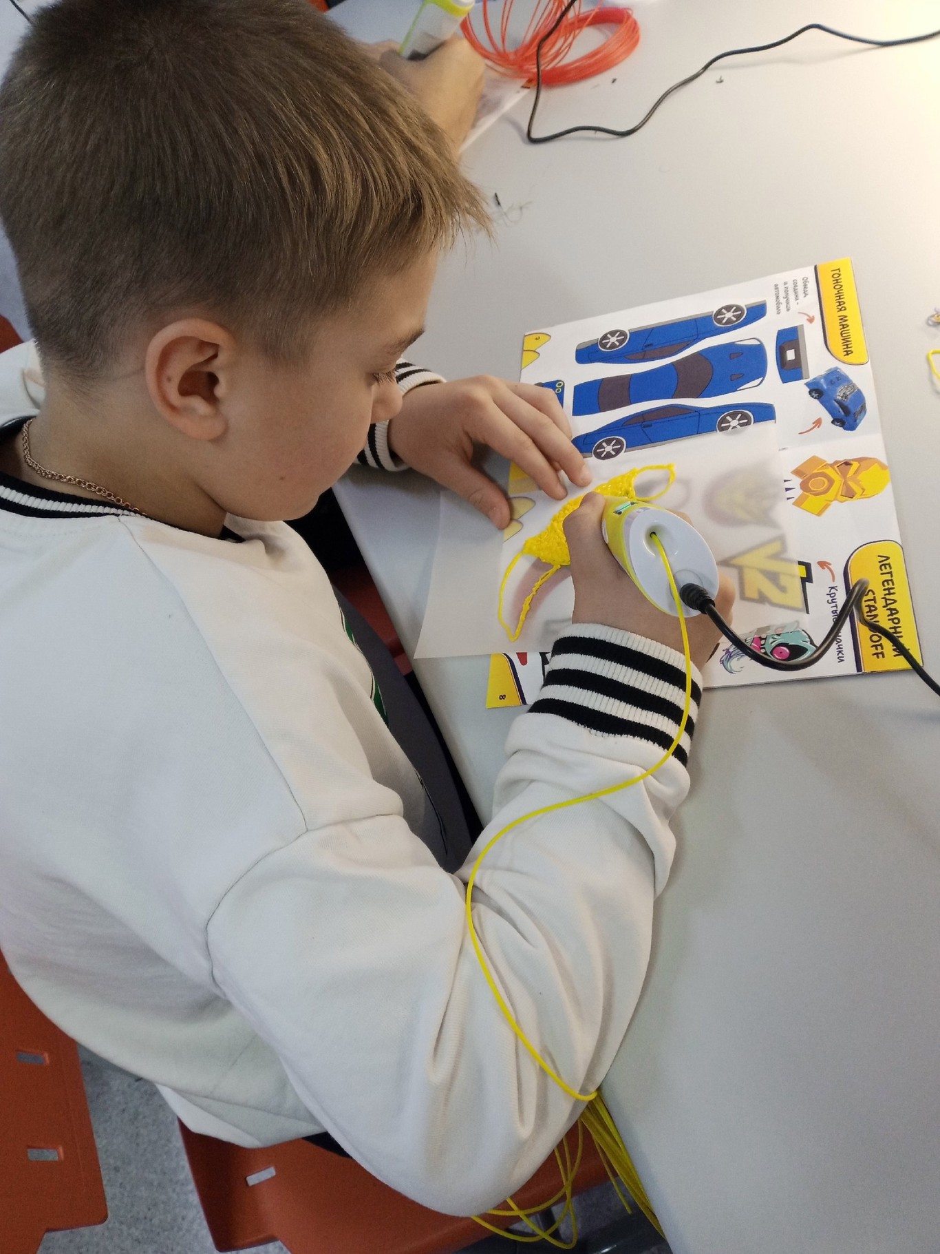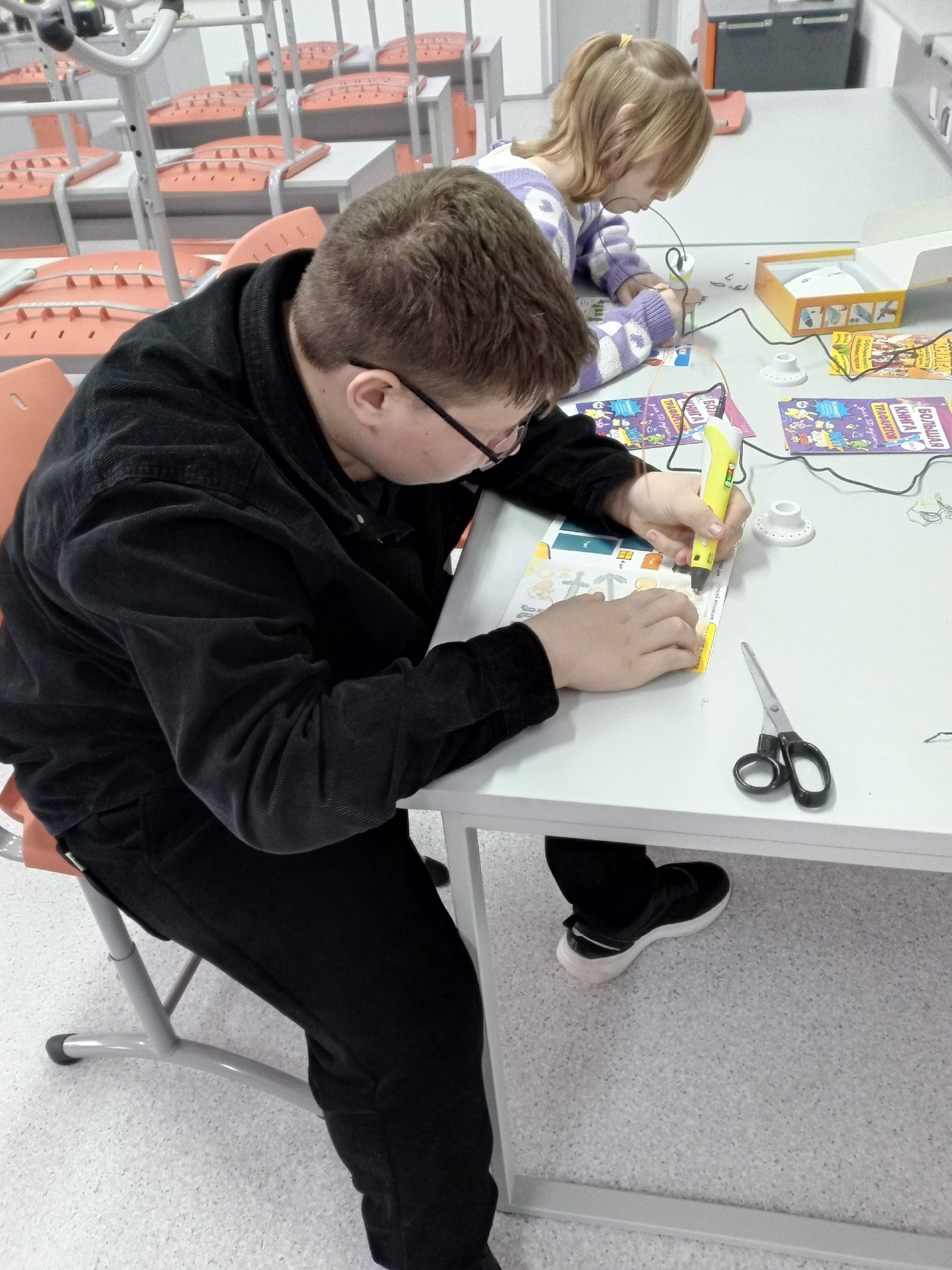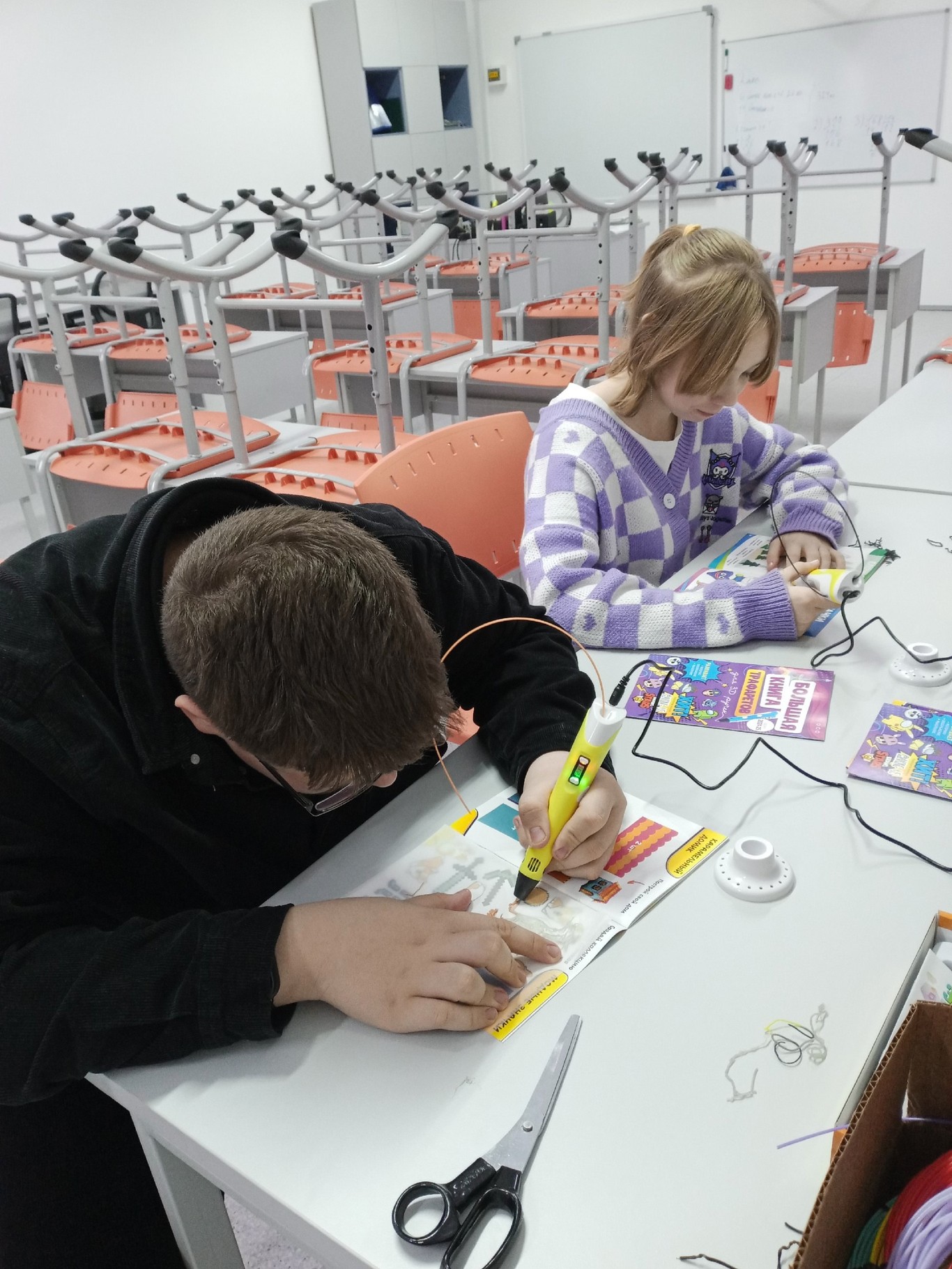 Практическая часть занятия была особенно интересной. Под руководством опытного педагога обучающиеся освоили технику создания плоских фигур по готовым шаблонам. Каждый участник смог попробовать себя в роли настоящего 3D-художника, научившись правильно держать инструмент, контролировать скорость подачи пластика и создавать ровные линии.