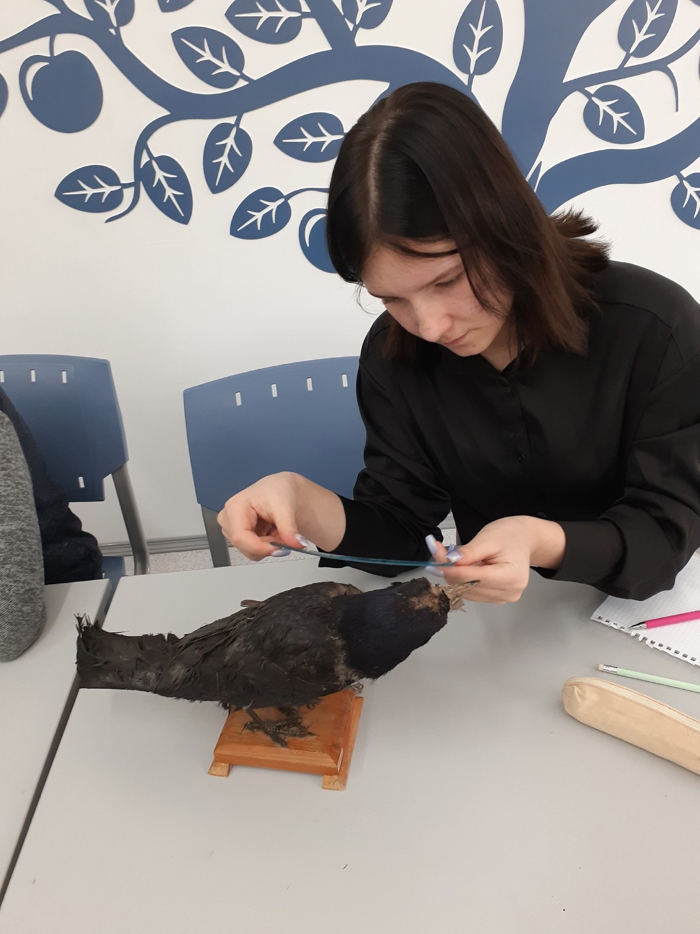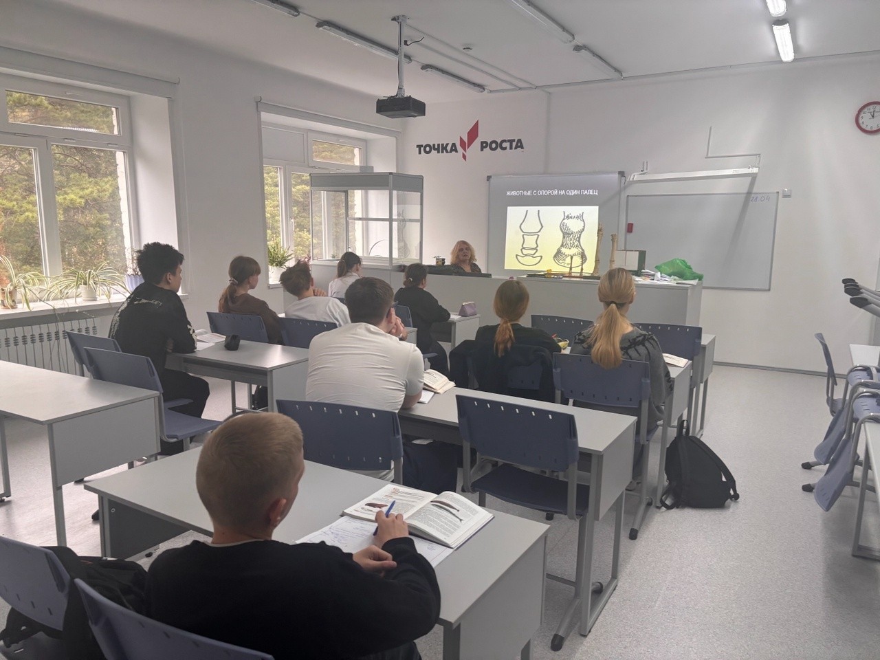 Современные образовательные технологии центра «Точка роста» позволили провести занятие на высоком методическом уровне. Учащиеся не только изучали теоретический материал, но и выполняли практические задания по определению типов перьев, их измерению и зарисовке характерных особенностей строения.