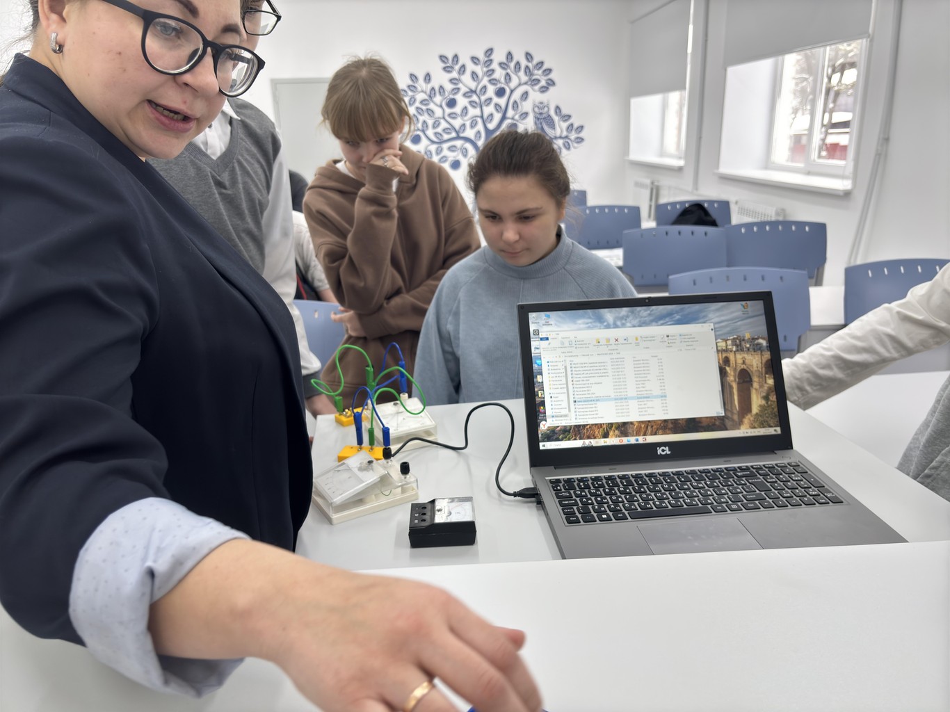 Педагог провела яркую презентацию, на которой продемонстрировала возможности оборудования центра образования "Точка роста" при проведении занятий