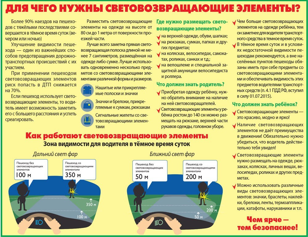 6)При отсутствии тротуаров пешеходы должны двигаться по обочинам или краю проезжей части навстречу движению транспорта. В темное время суток рекомендуется иметь при себе предметы (одежду) со светоотражающими элементами.