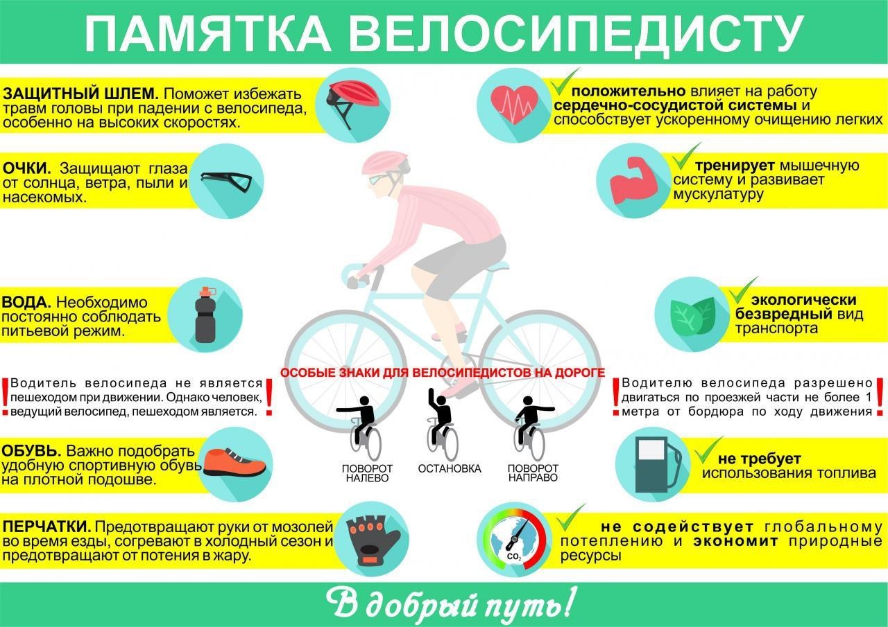 6)Безопаснее при езде на велосипеде надевать велосипедный шлем и средства защиты (наколенники, налокотники).