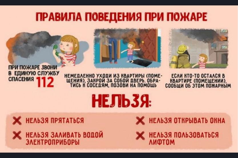 Покинув квартиру, не уходить далеко от дома. Найти безопасное место, подождать прибытия пожарной бригады.